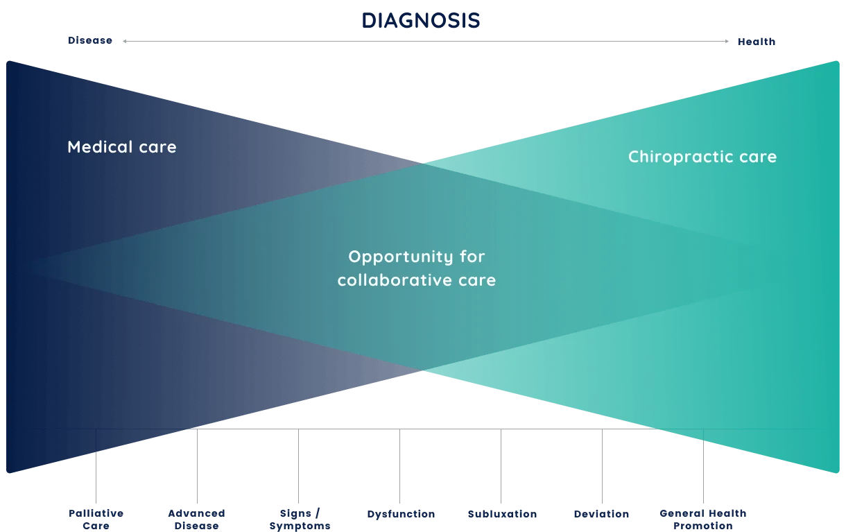 The practice of chiropractic includes establishing a diagnosis, facilitating neurological and biomechanical integrity through appropriate chiropractic case management, and promoting health.